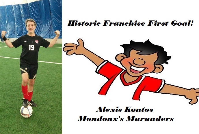 After a scoreless first half for his Mondoux's Marauders, Alexis Kontos took matters in to his own hands to score his team's first-ever goal in the GGSL, redirecting a shot with his back to goal with a savvy inside flick through the keeper's legs. Play was momentarily halted as both benches emptied to congratulate "AK-47" on his historic achievement! #FranchiseFirst #Mondoux'sMaraudersLegend #SnipersWillSnipe!